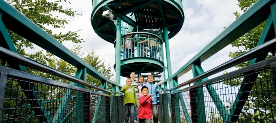 Maak een avontuurlijke wandeling tussen de toppen van de bomen. Vanaf het Boomkroonpad starten verschillende gemarkeerde wandelroutes en speurtochten. Kinderen spelen uitgebreid in het speelbos.